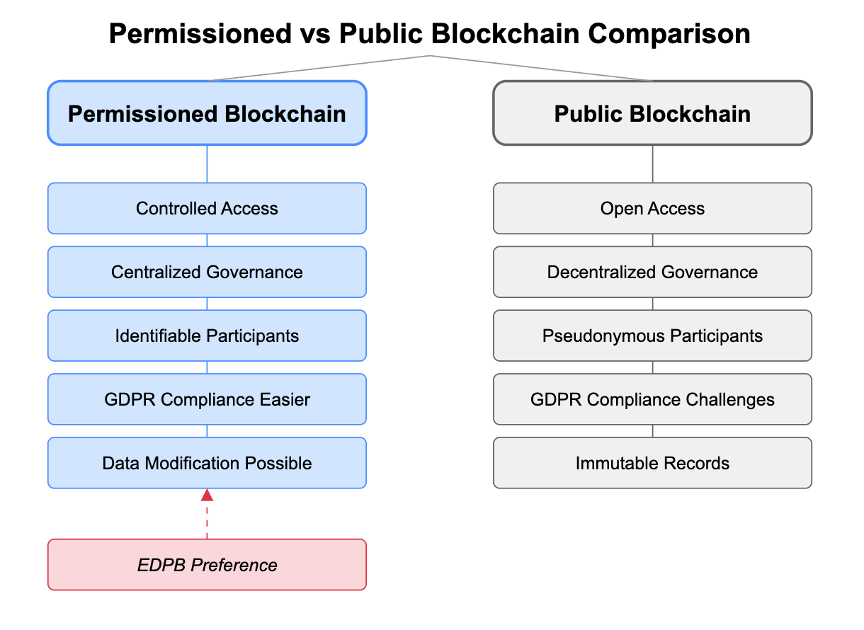 The EDPB guidance exemplifies a broader regulatory pattern: applying top-down regulatory frameworks to bottom-up, decentralized technologies. The guidelines recommend permissioned blockchains, effectively endorsing systems where access is managed by specific entities or gatekeepers. This stands in stark contrast to the foundational intent of public blockchains, where decentralization and user autonomy are paramount.