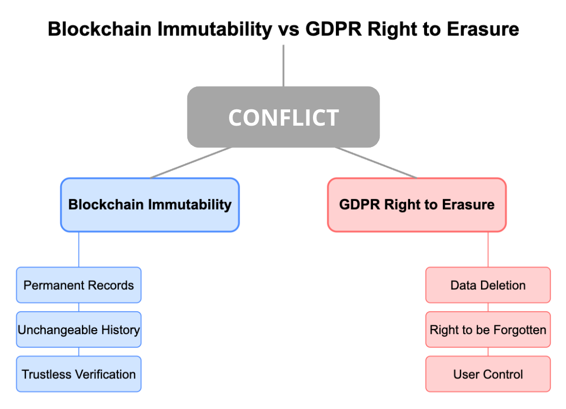 At the heart of this conflict is a fundamental contradiction: blockchain's immutable design versus GDPR's right to erasure. When users request their personal data be deleted under GDPR's "right to be forgotten," blockchain's permanent, unalterable ledger creates an impossible compliance scenario.